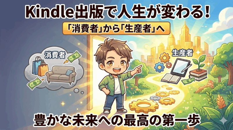 Kindle出版は、単なるお小遣い稼ぎの手段ではなくて、私たちを「消費者」から「生産者」へと生まれ変わらせ、その後の人生をどこまでも豊かにしていくためのとっかかりになる最高の方法だと思っています。